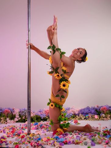 Since joining the pole community Joan has discovered a passion for performing and wants to help each student to discover the performer in themselves. She says"The aerial community is a place where being flamboyant and your true self is celebrated".
